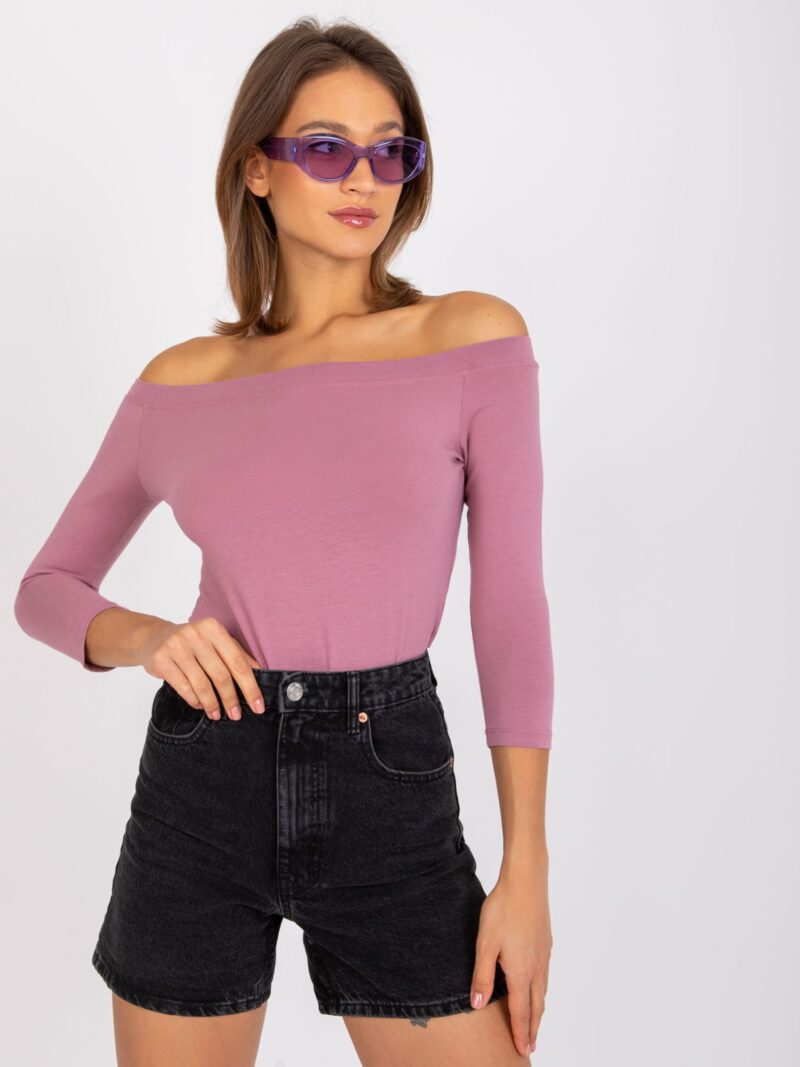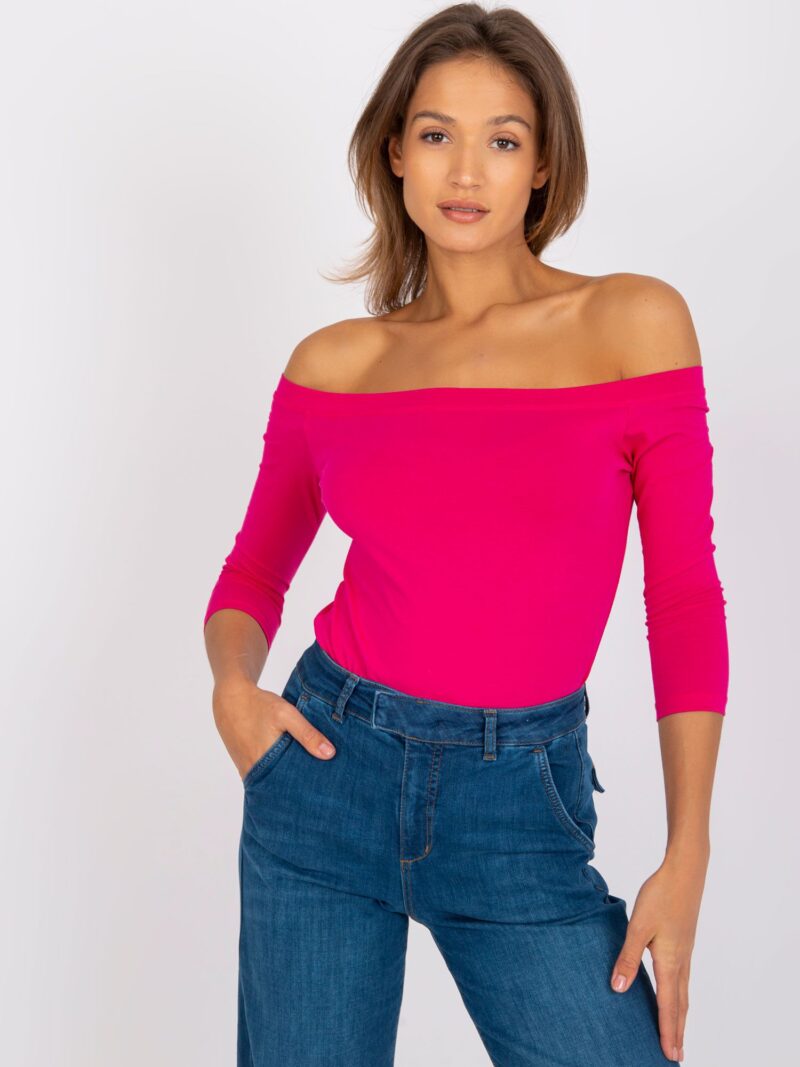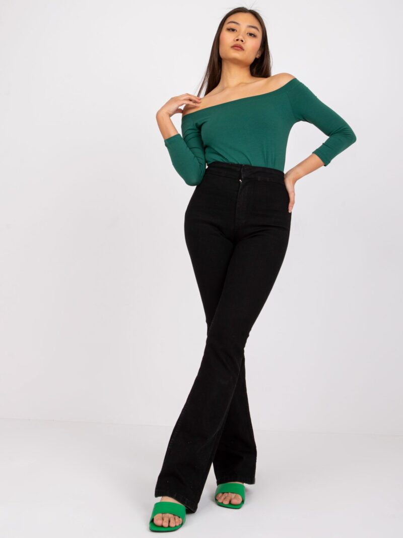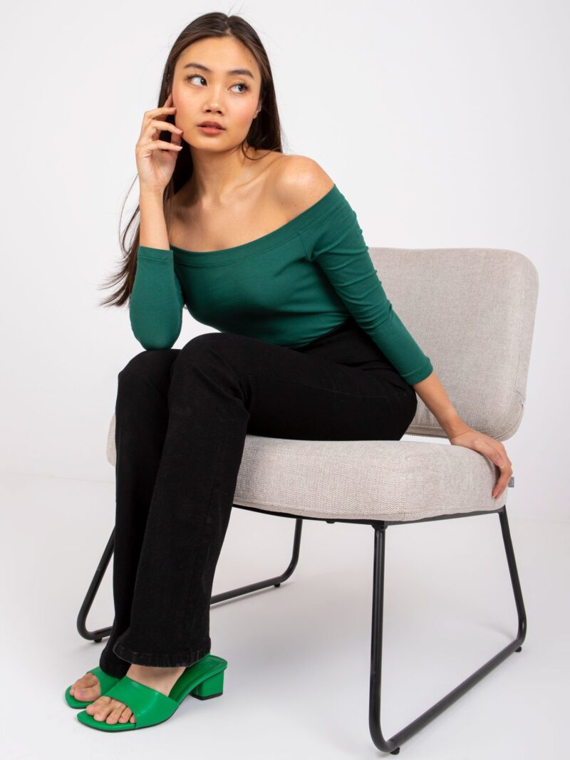 Zielona bluzka z odkrytymi ramionami i rękawem 3/4