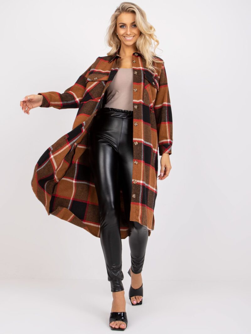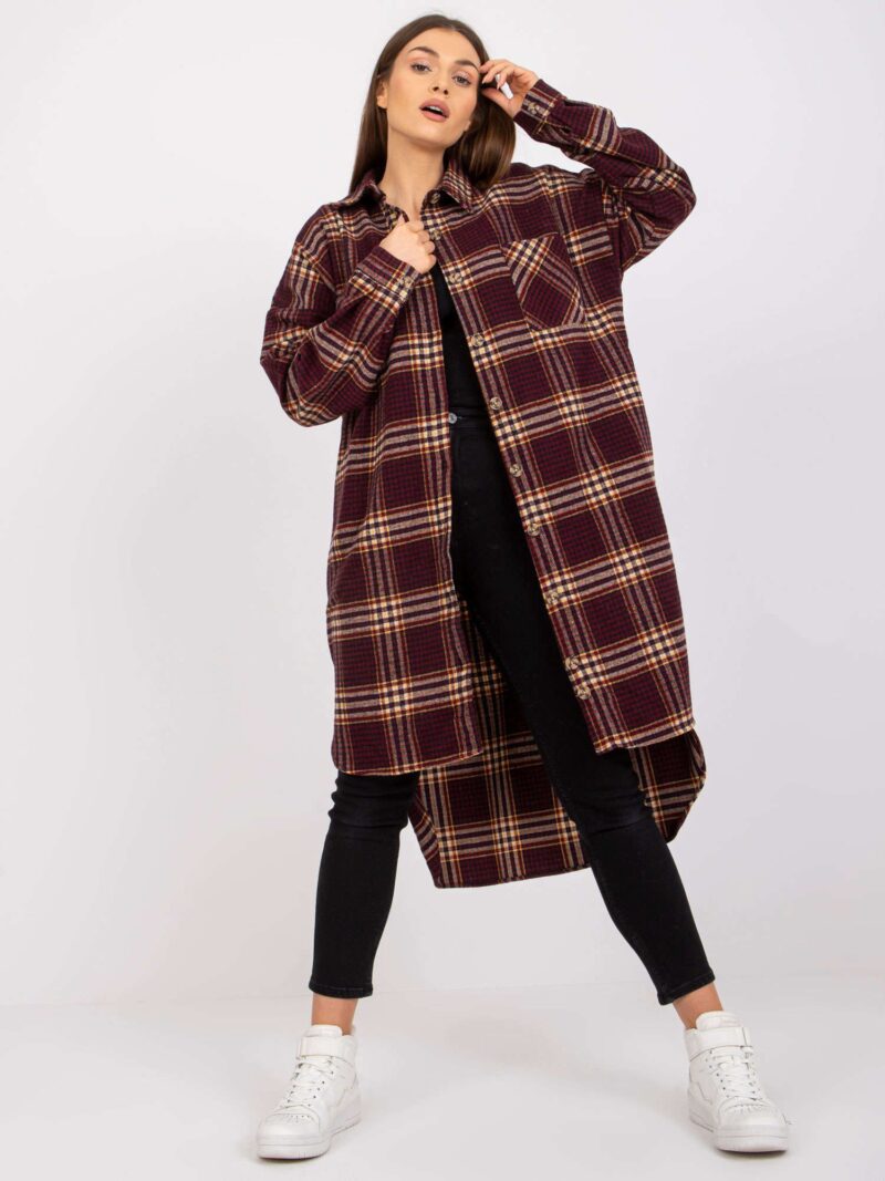 Czerwona długa koszula w kratę