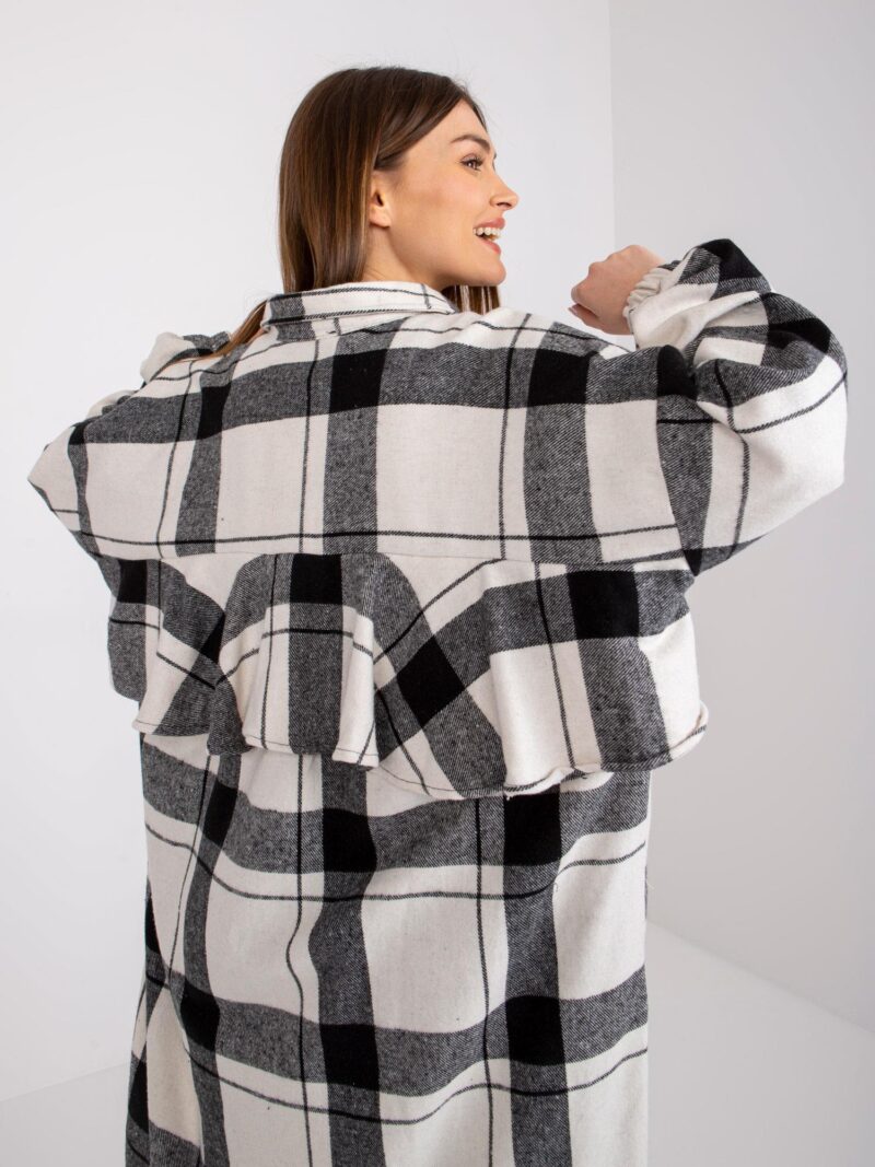 Czarno-biała długa koszula w kratę ze zdobieniem na plecach