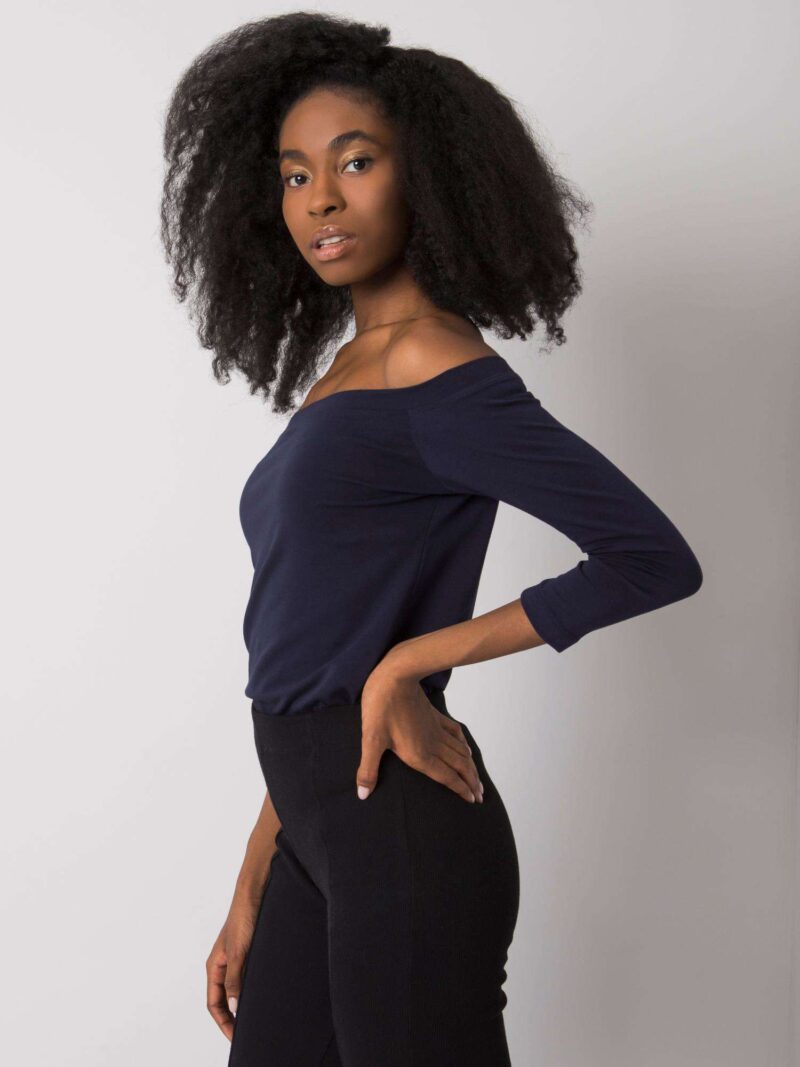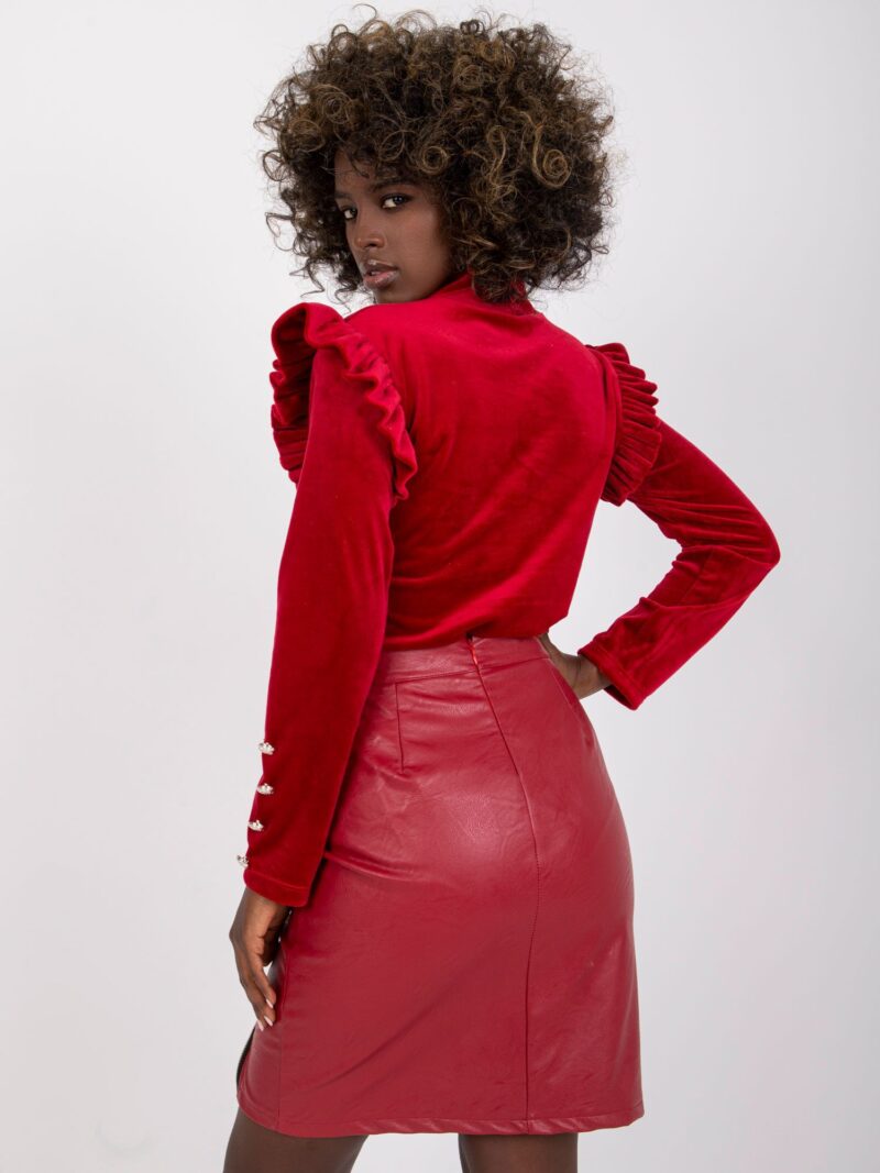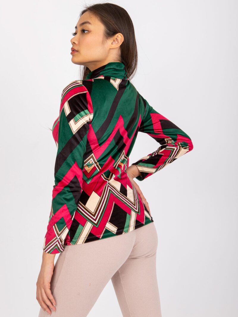 Welurowa bluzka z wycięciem na dekolcie i golfem