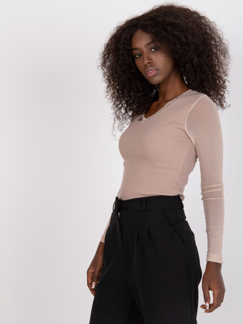 Beżowa elegancka bluzka z bufiastymi rękawami