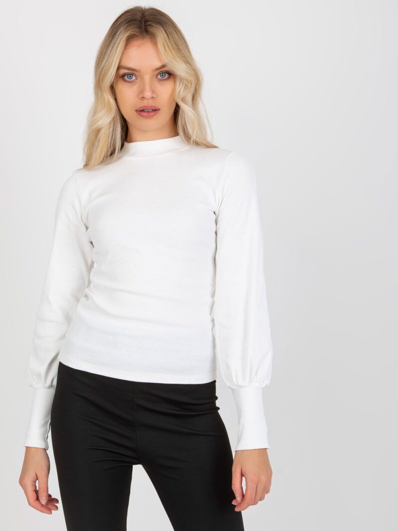 Beżowa bluzka wizytowa z szerokimi plisowanymi rękawami