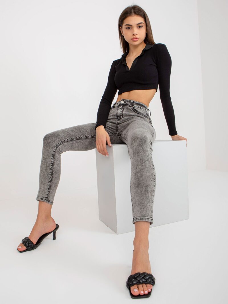 Szare jeansy damskie z wysokim stanem