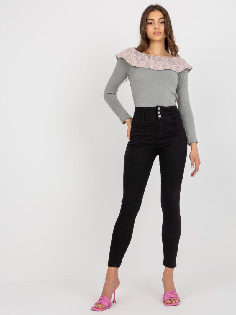 Czarne przylegające jeansy damskie z wysokim stanem