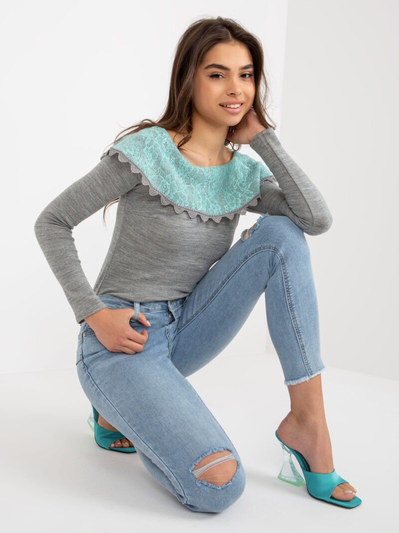 Szare przylegające jeansy damskie