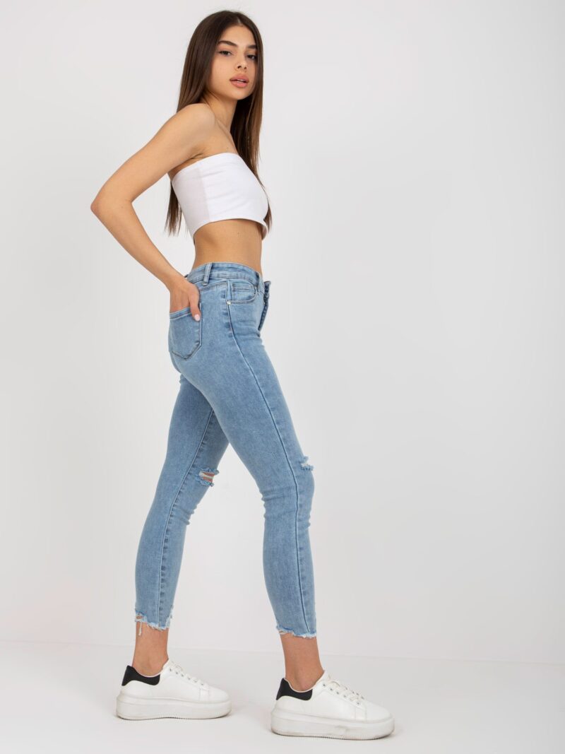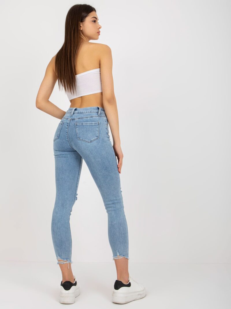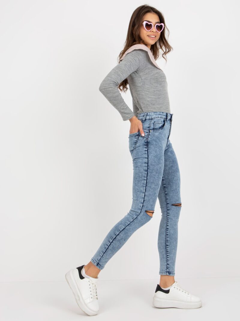 Niebieskie jeansy damskie z przetarciami