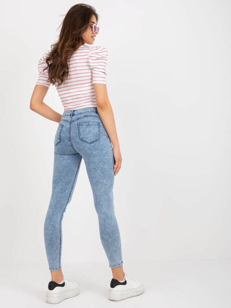 Niebieskie zwężane jeansy damskie z wysokim stanem