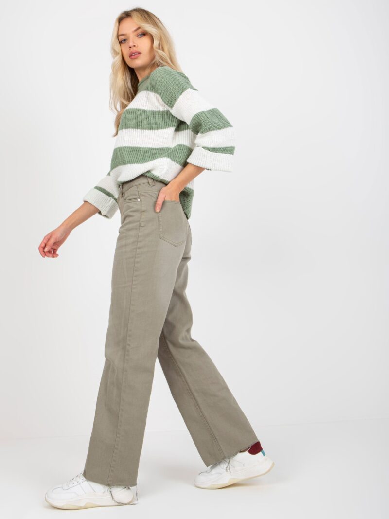 Damskie spodnie wide leg w kolorze khaki