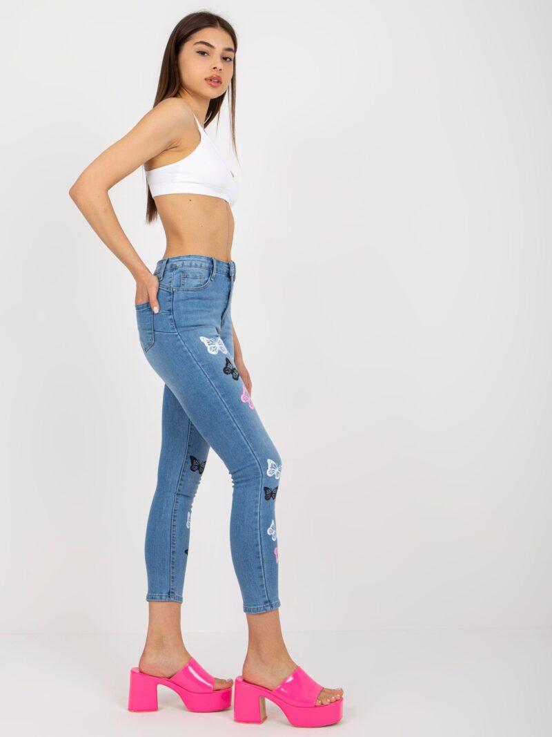 Niebieskie dopasowane jeansy damskie