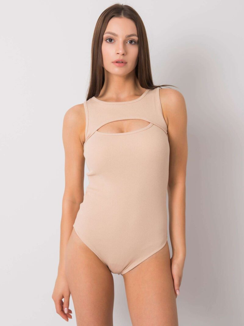 Beżowe body na ramiączkach z wcięciem na dekolcie