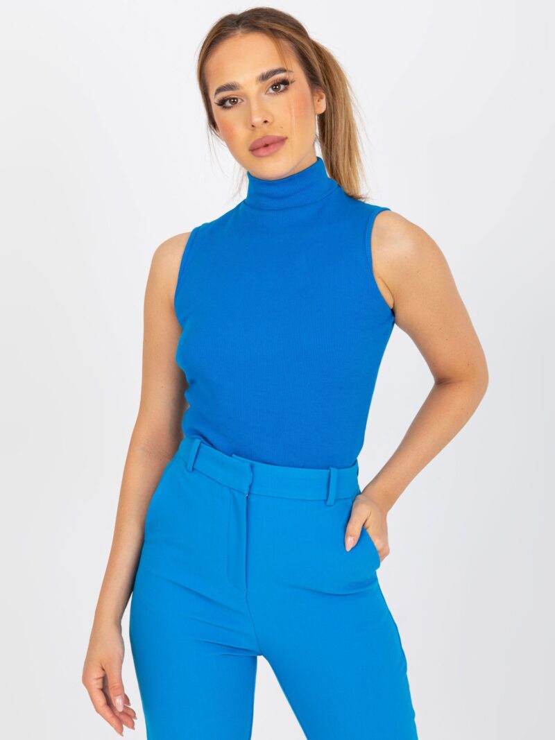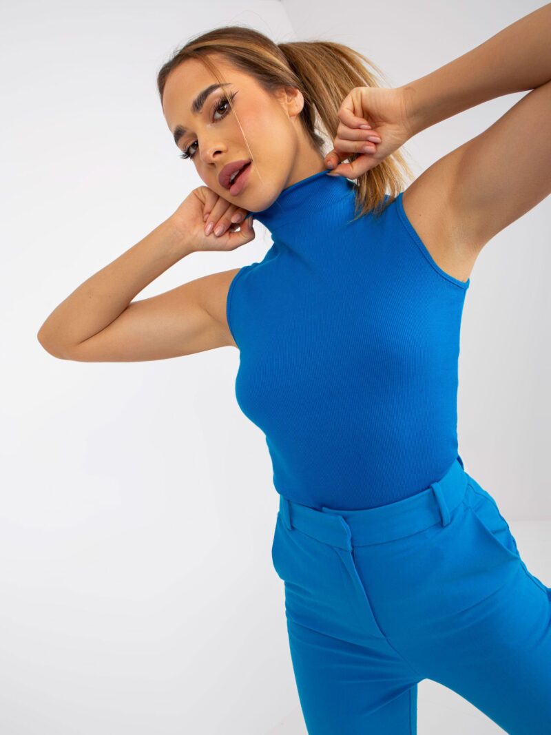 Jasnoniebieskie body na ramiączkach z wcięciem na dekolcie