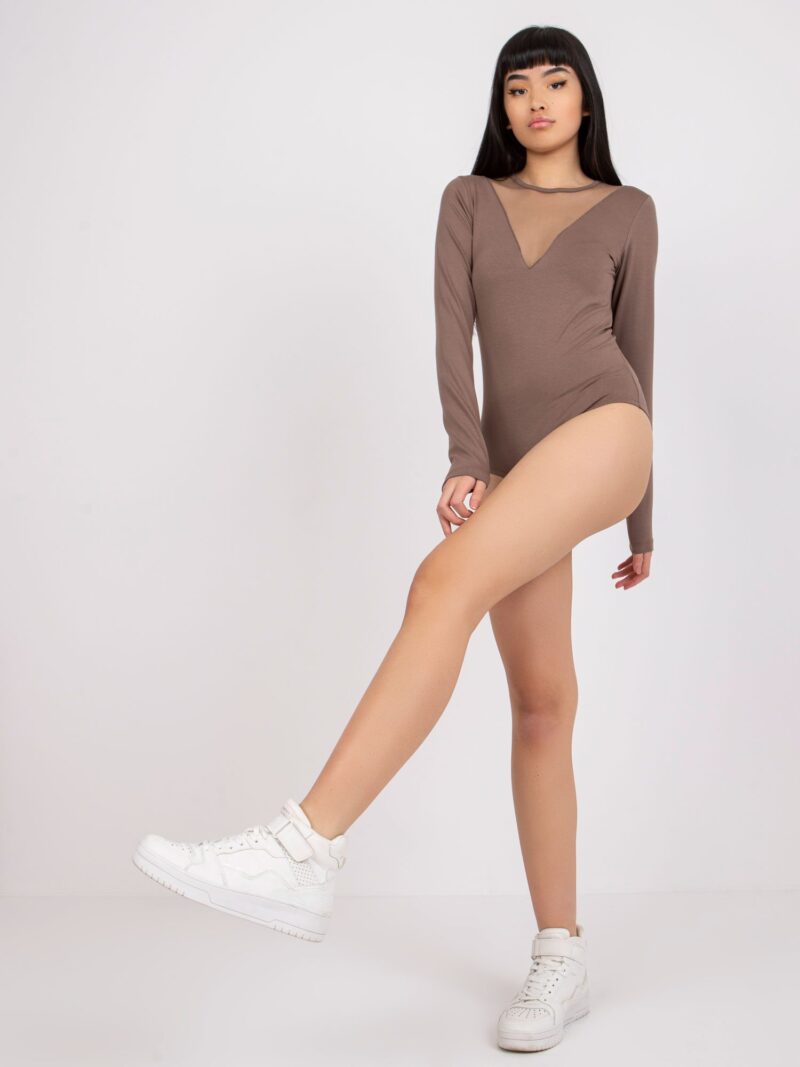 Beżowe body na ramiączkach z wcięciem na dekolcie