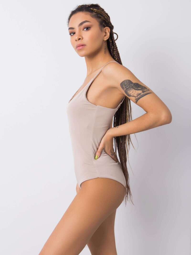 Beżowe body na ramiączkach zapinane na zatrzaski