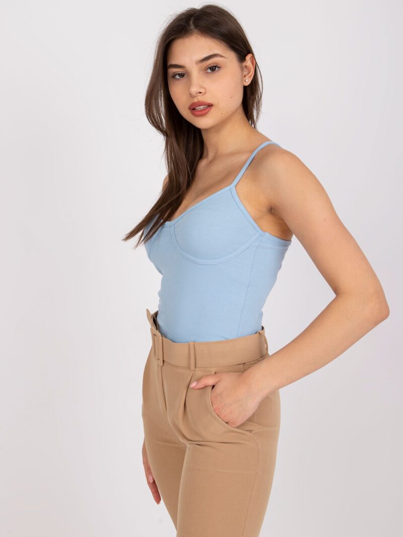 Jasnoniebieskie body na ramiączkach z wcięciem na dekolcie