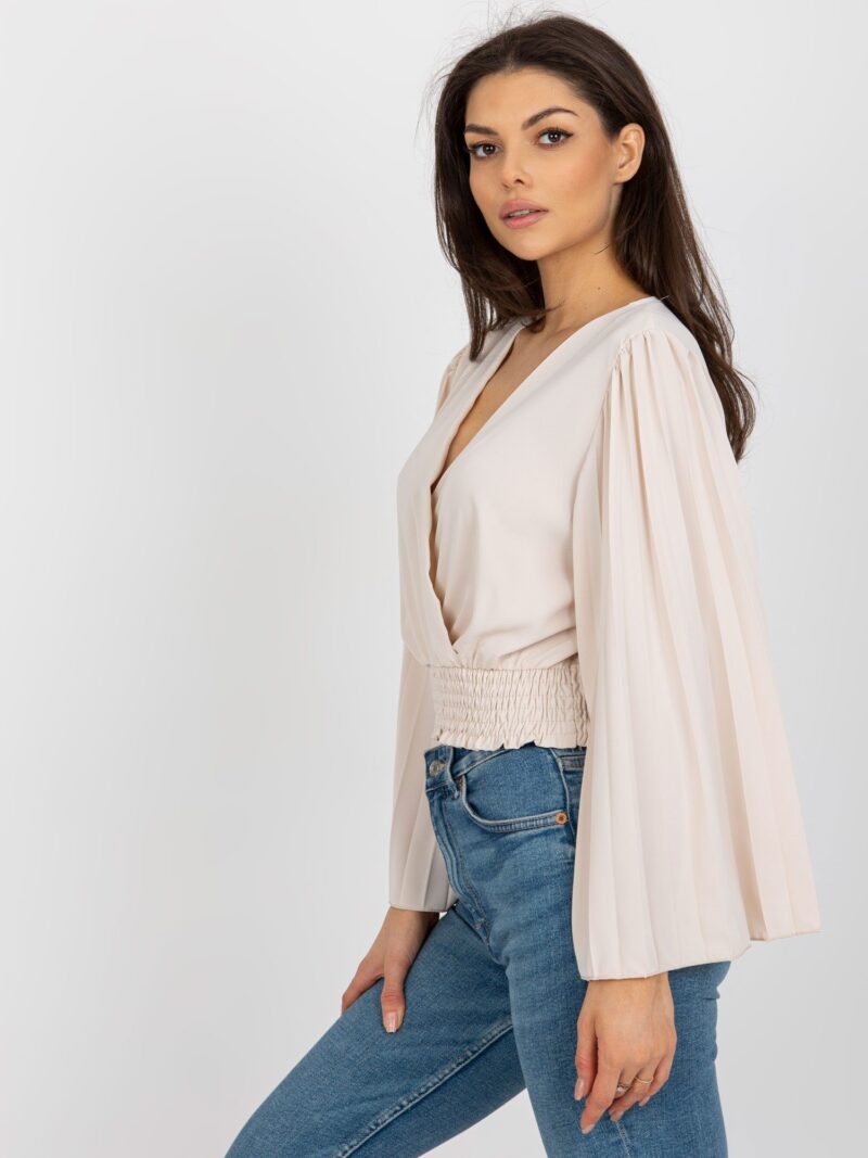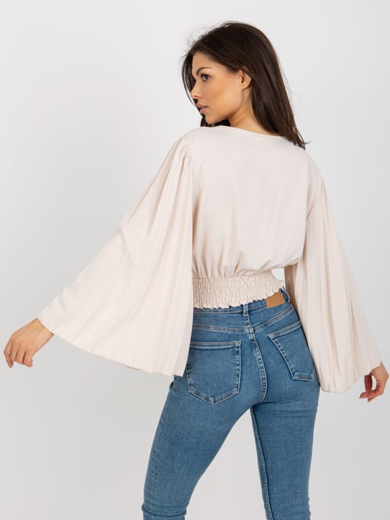 Beżowa bluzka wizytowa z szerokimi plisowanymi rękawami