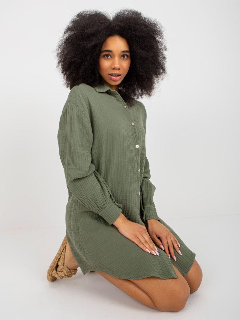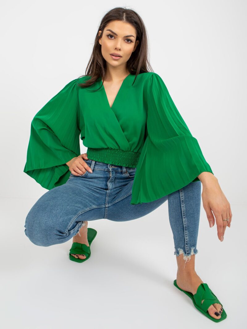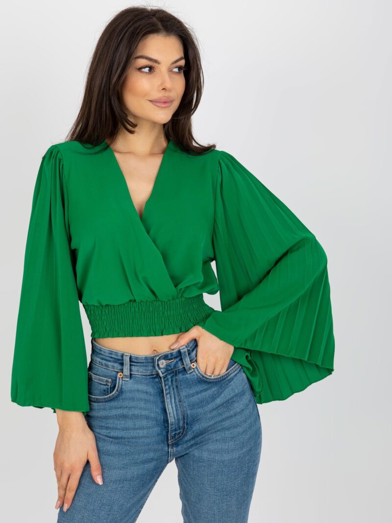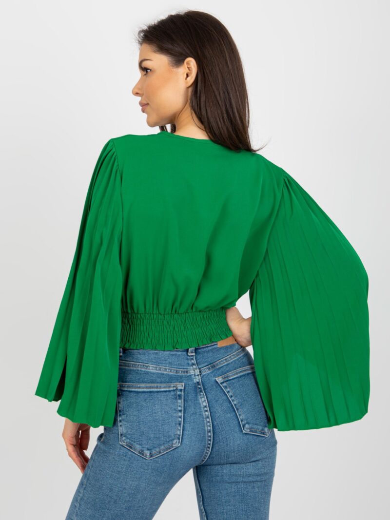 Zielona krótka bluzka z szerokimi plisowanymi rękawami