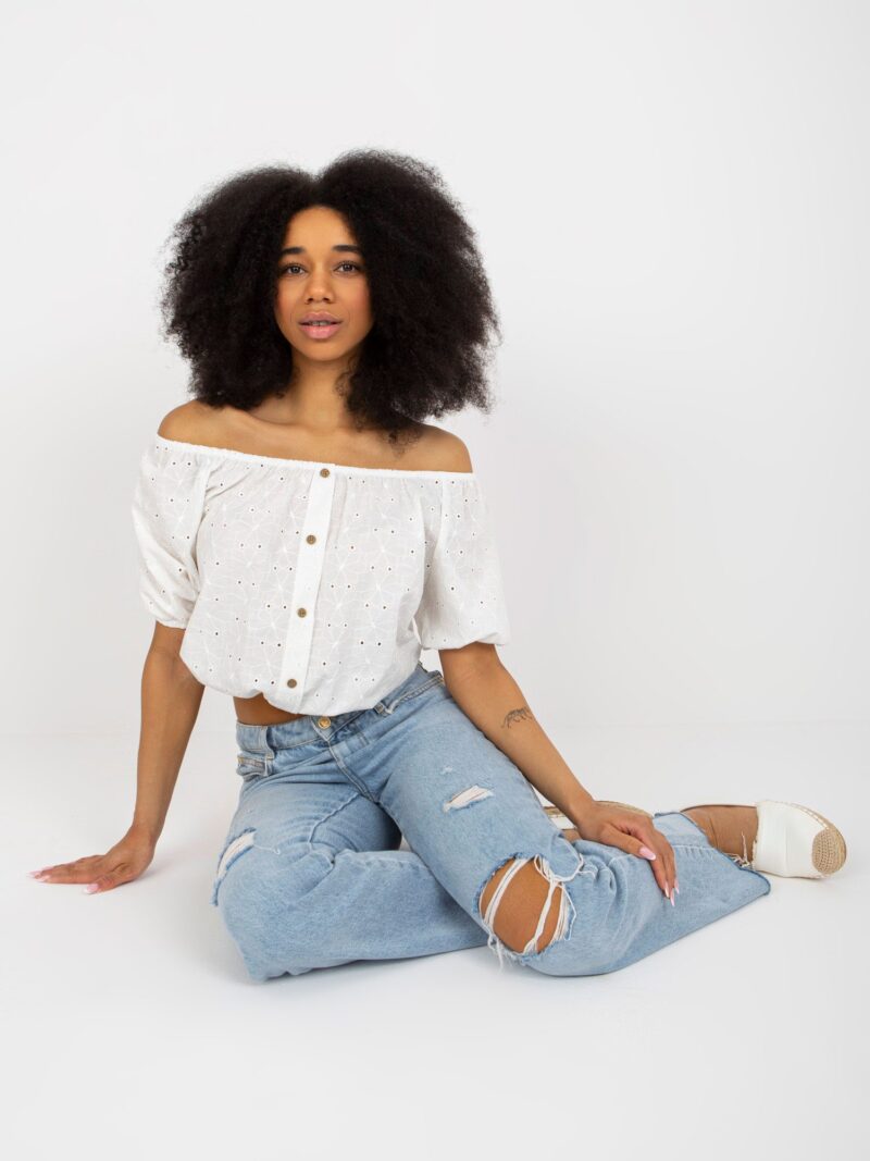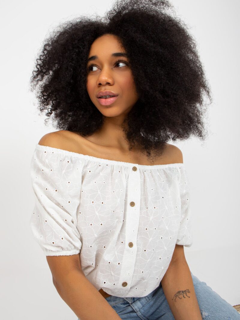 Ażurowa bluzka hiszpanka w kolorze ecru
