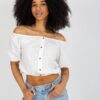 Cechą dodatkową, która wyróżnia tę bluzkę na tle innych, są guziki ozdobne, które dodają uroku i charakteru. Krótka długość bluzki pozwala na swobodne łączenie jej z różnymi rodzajami spodni czy też spódnic.