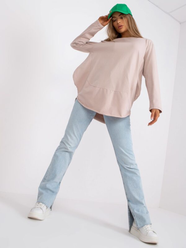 Beżowa bluzka oversize z długim rękawem