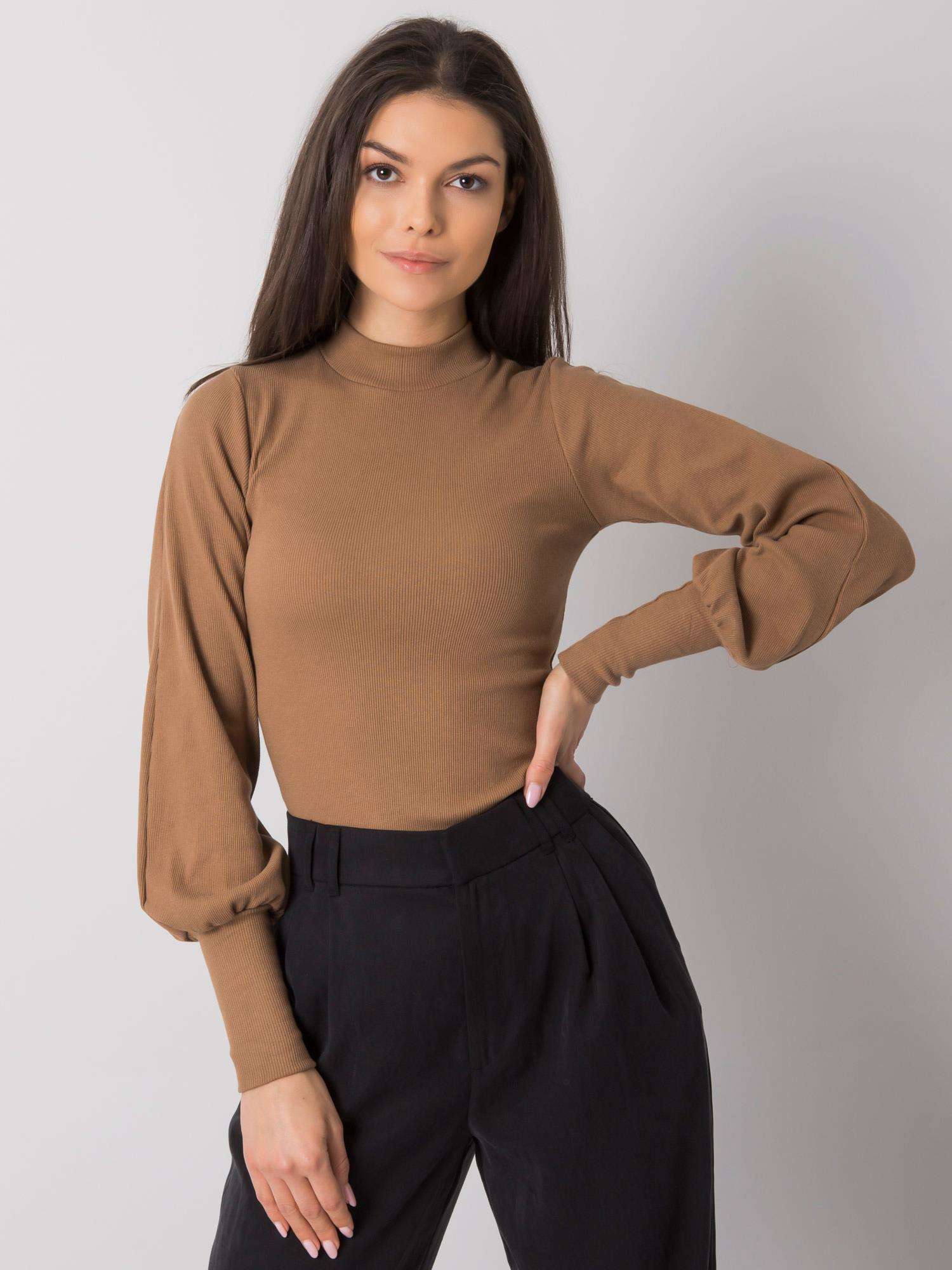 Beżowa elegancka bluzka z bufiastymi rękawami