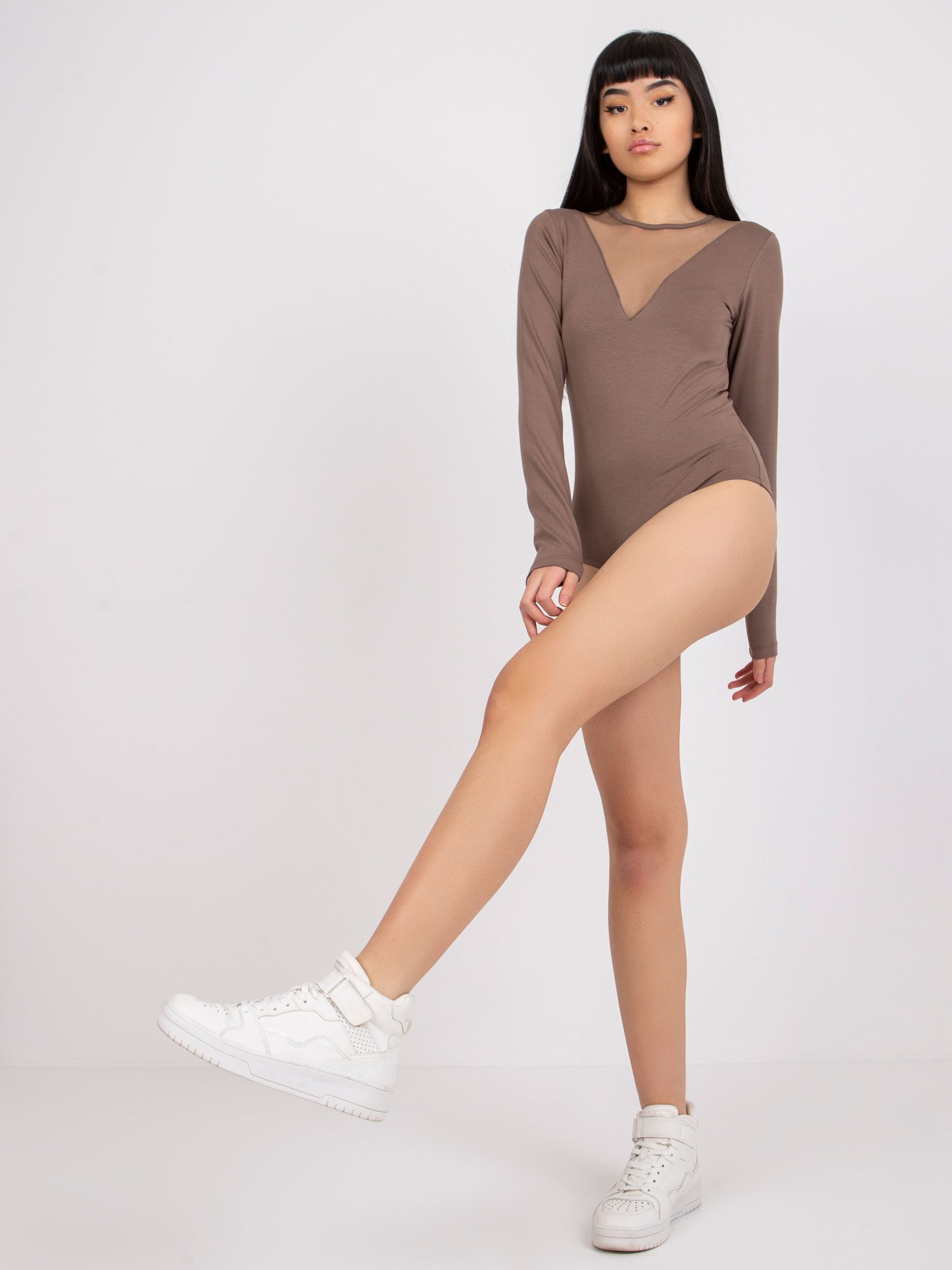 Brązowe body z długim rękawem