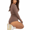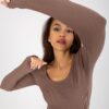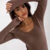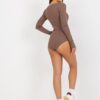 Brązowe prążkowane body z długim rękawem