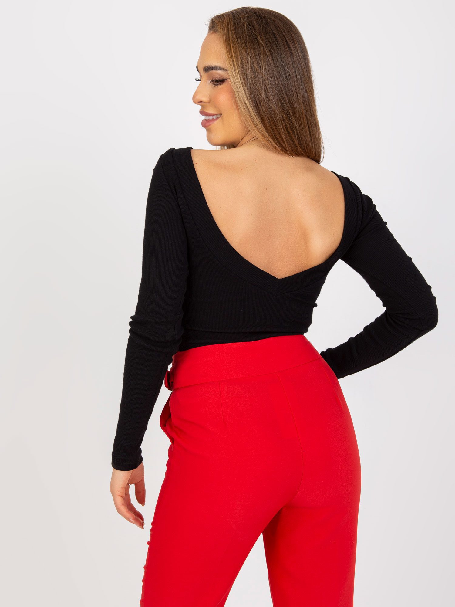 Czarna bluzka z odkrytymi plecami