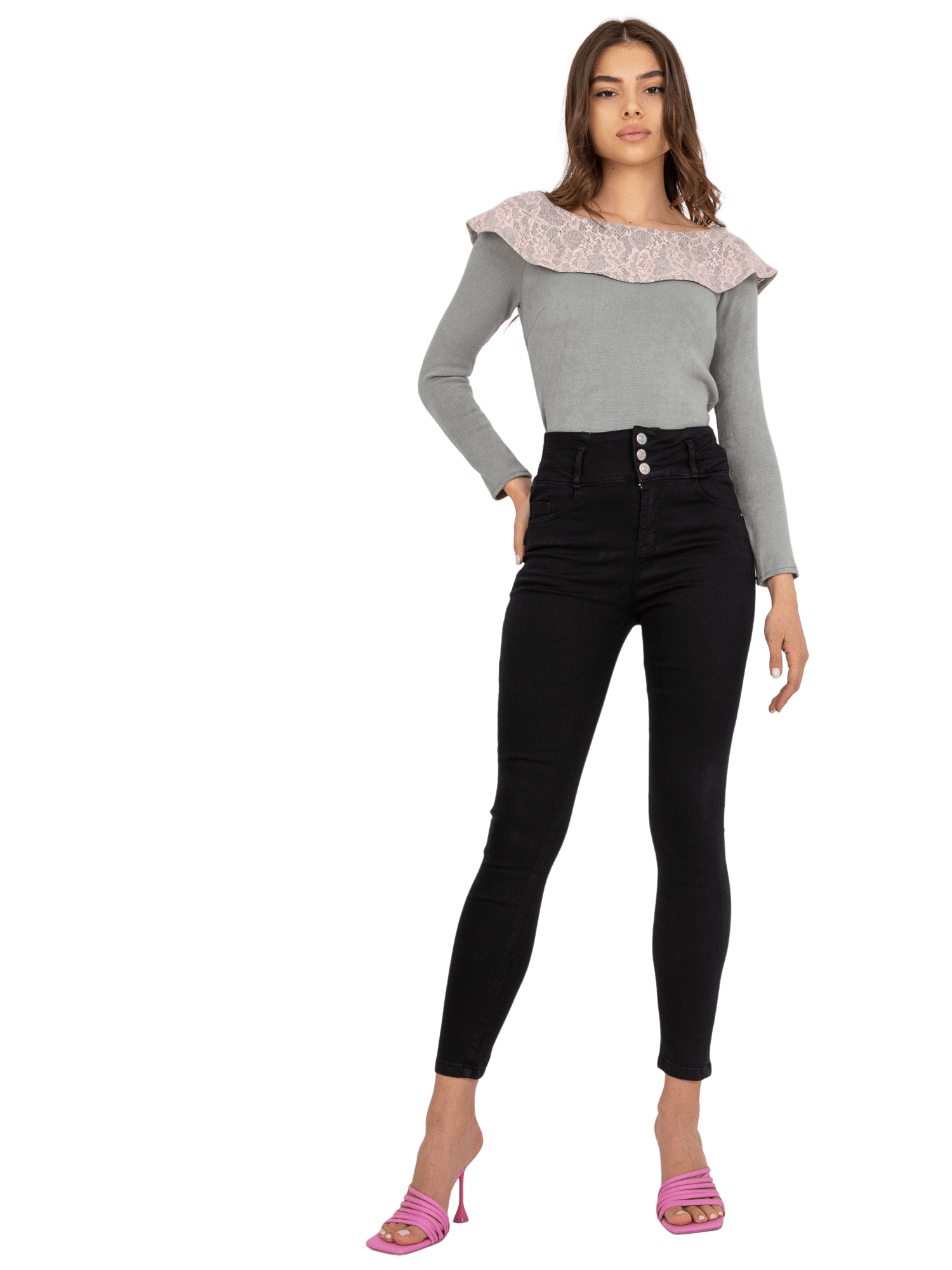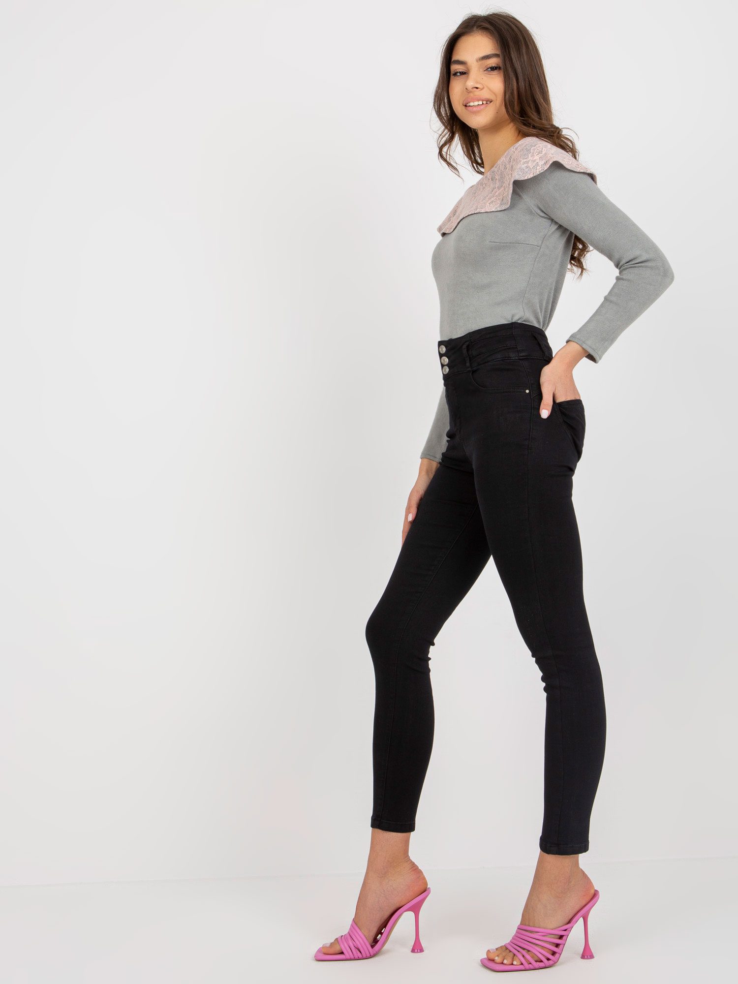 Czarne przylegające jeansy damskie z wysokim stanem