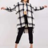 Czarno-biała długa koszula w kratę ze zdobieniem na plecach