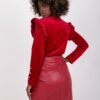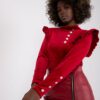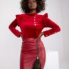 Czerwona welurowa bluzka z falbaną na ramionach