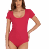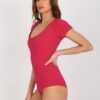 Fuksjowe body damskie z krótkim rękawem