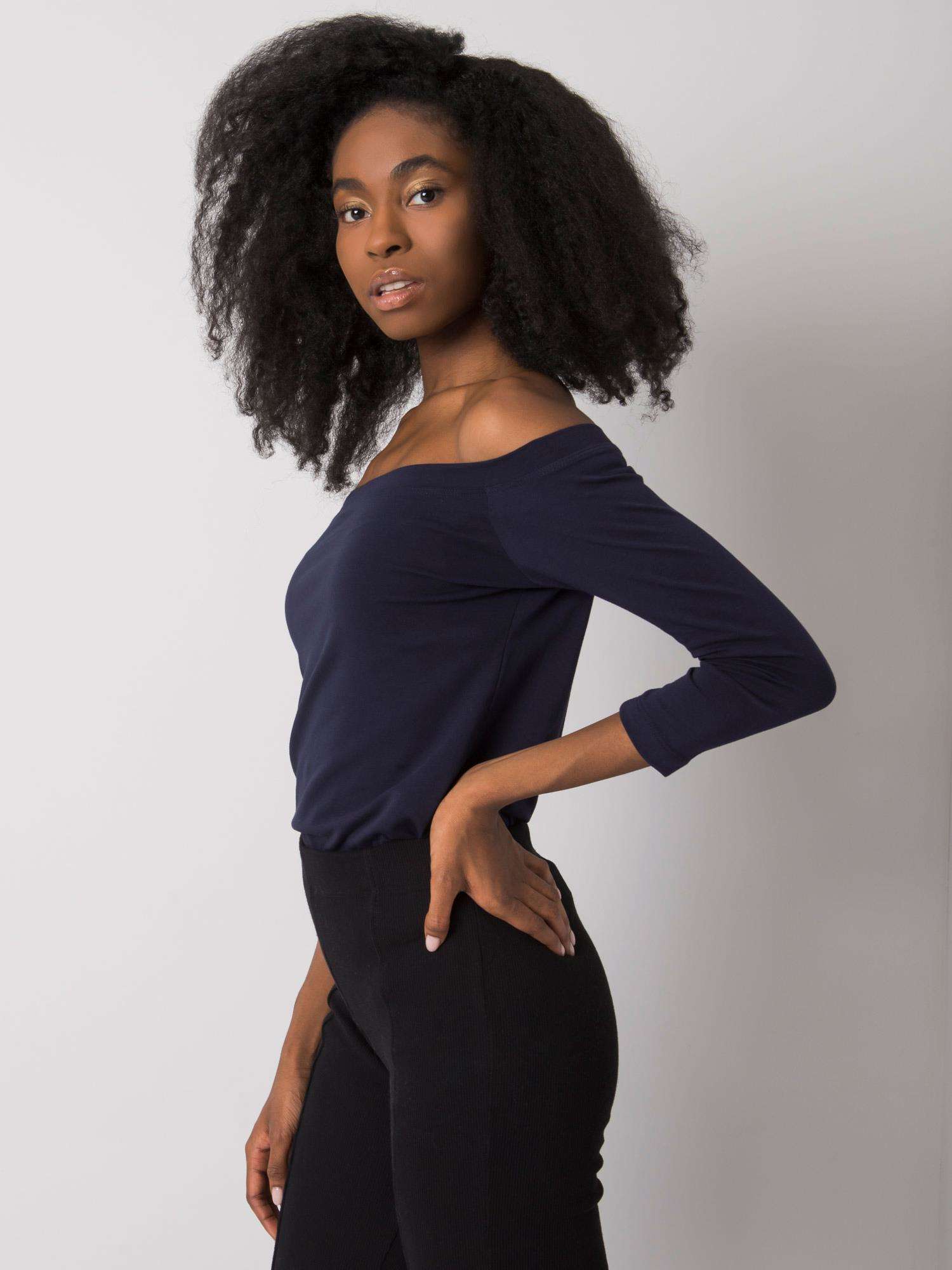 Granatowa bluzka z odsłoniętymi ramionami