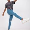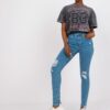 Jeansy skinny z dziurami na nogawkach oraz podwyższonym stanem, najlepiej wyglądają z luźnymi t-shirtami oraz butami sportowymi. Podstawa casualowej stylizacji.