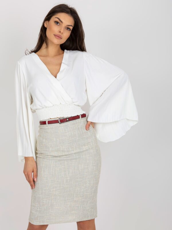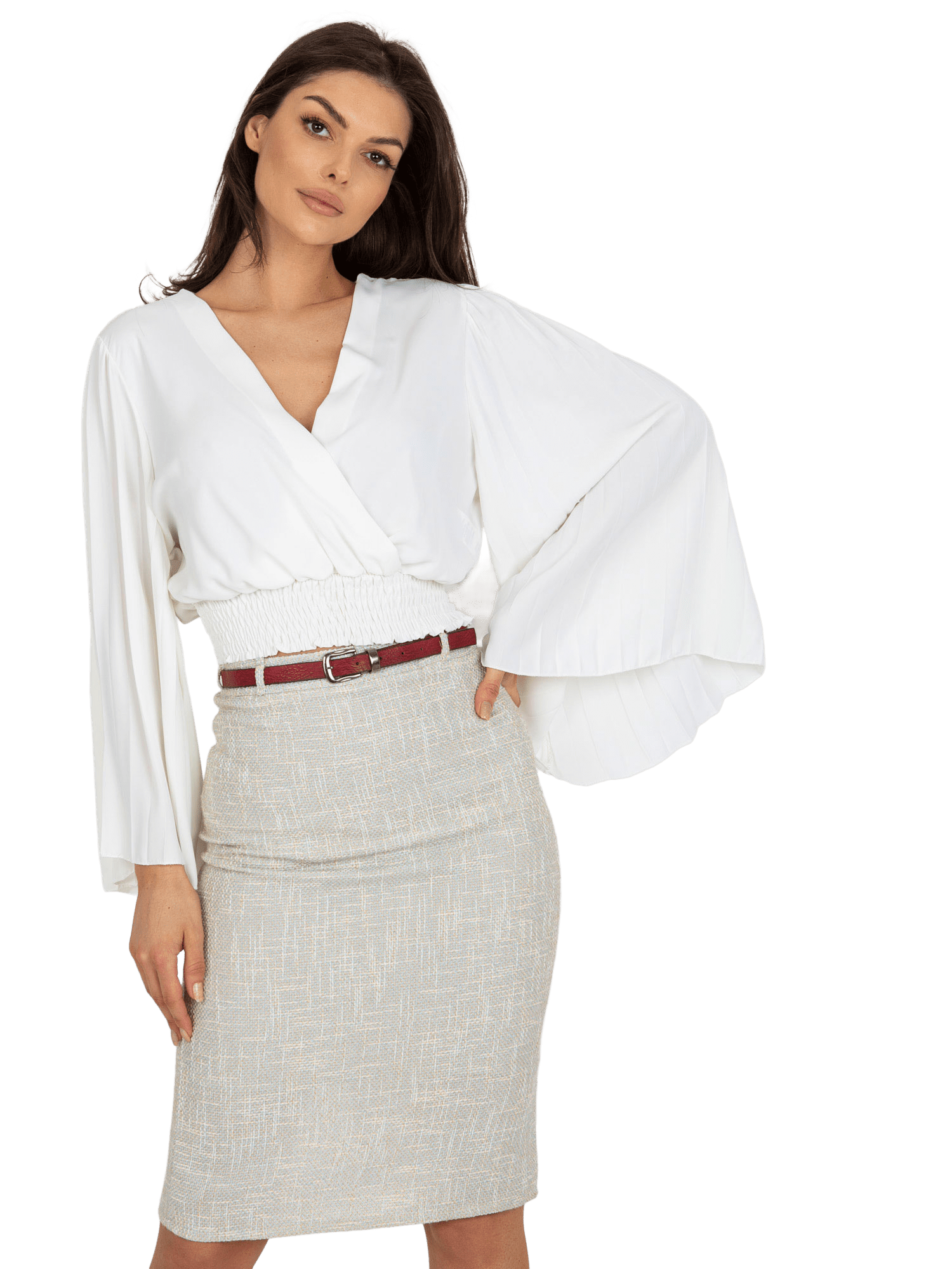 Krótka bluzka wizytowa z szerokimi plisowanymi rękawami