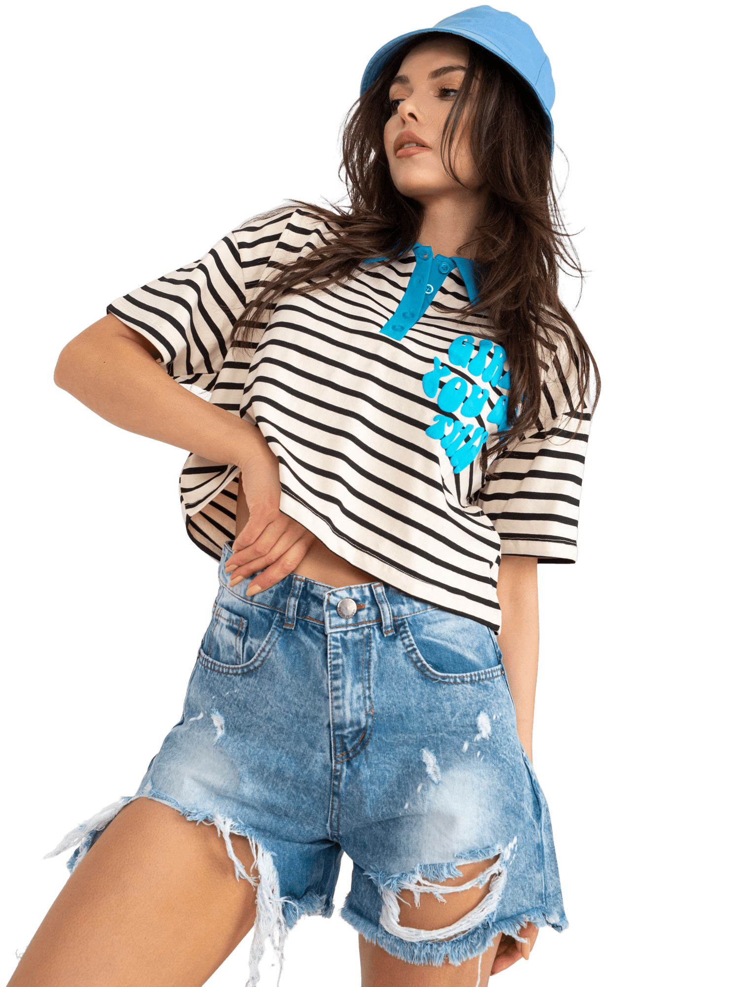 Krótka koszulka damska z nadrukiem w paski to idealna propozycja dla kobiet, które cenią sobie styl casualowy i chcą wyglądać modnie. Wykonana z wysokiej jakości bawełny. Paski nadają koszulce unikalnego charakteru i energetycznego wyglądu. Koszulka polo wyróżnia się spośród innych, dodając odrobiny swobodnego stylu do Twojej garderoby. Nadruk w paski jest modny i pasuje do różnych okazji.