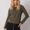 Luźna bluzka z długim rękawem w kolorze khaki