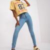 Niebieskie damskie dopasowane spodnie jeansowe