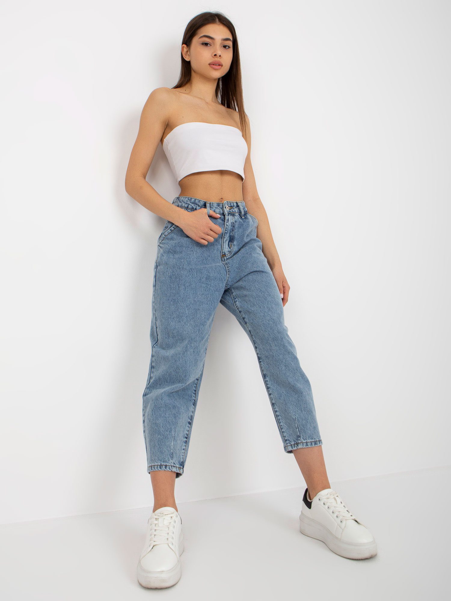 Niebieskie luźne jeansy damskie