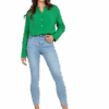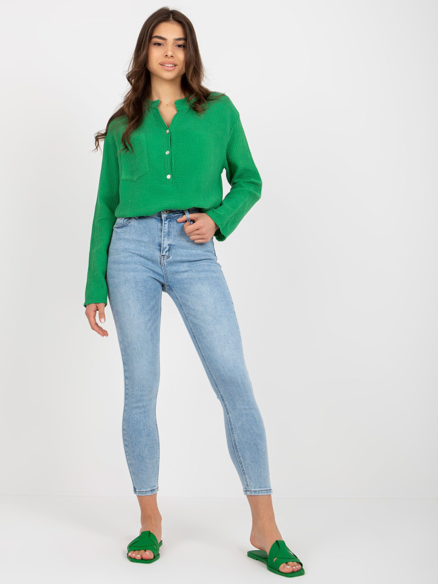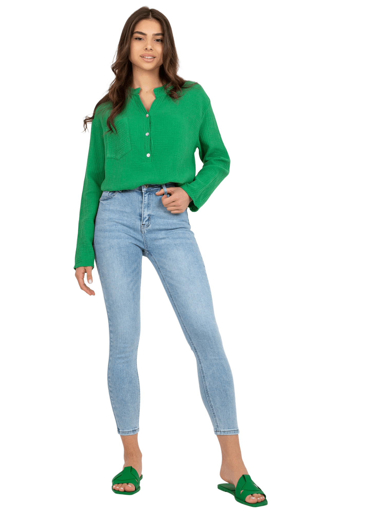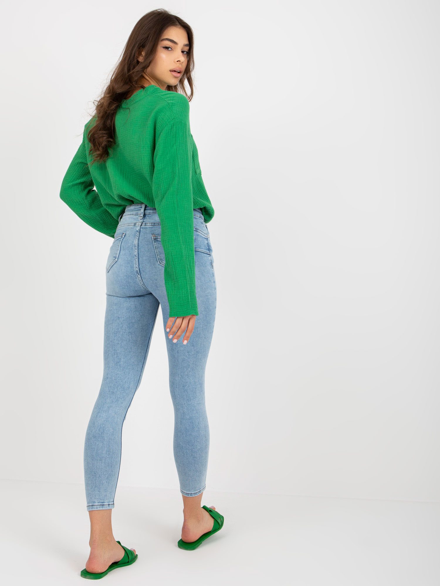 Niebieskie zwężane jeansy damskie z wysokim stanem