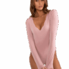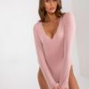 Różowe gładkie body z długim rękawem