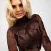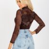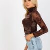 Wzorzysta damska bluzka z golfem w kolorze brązowym