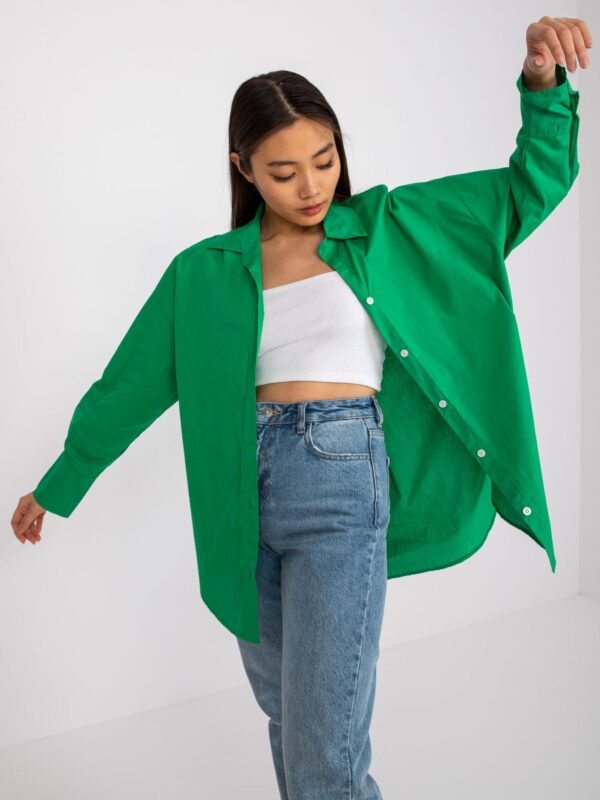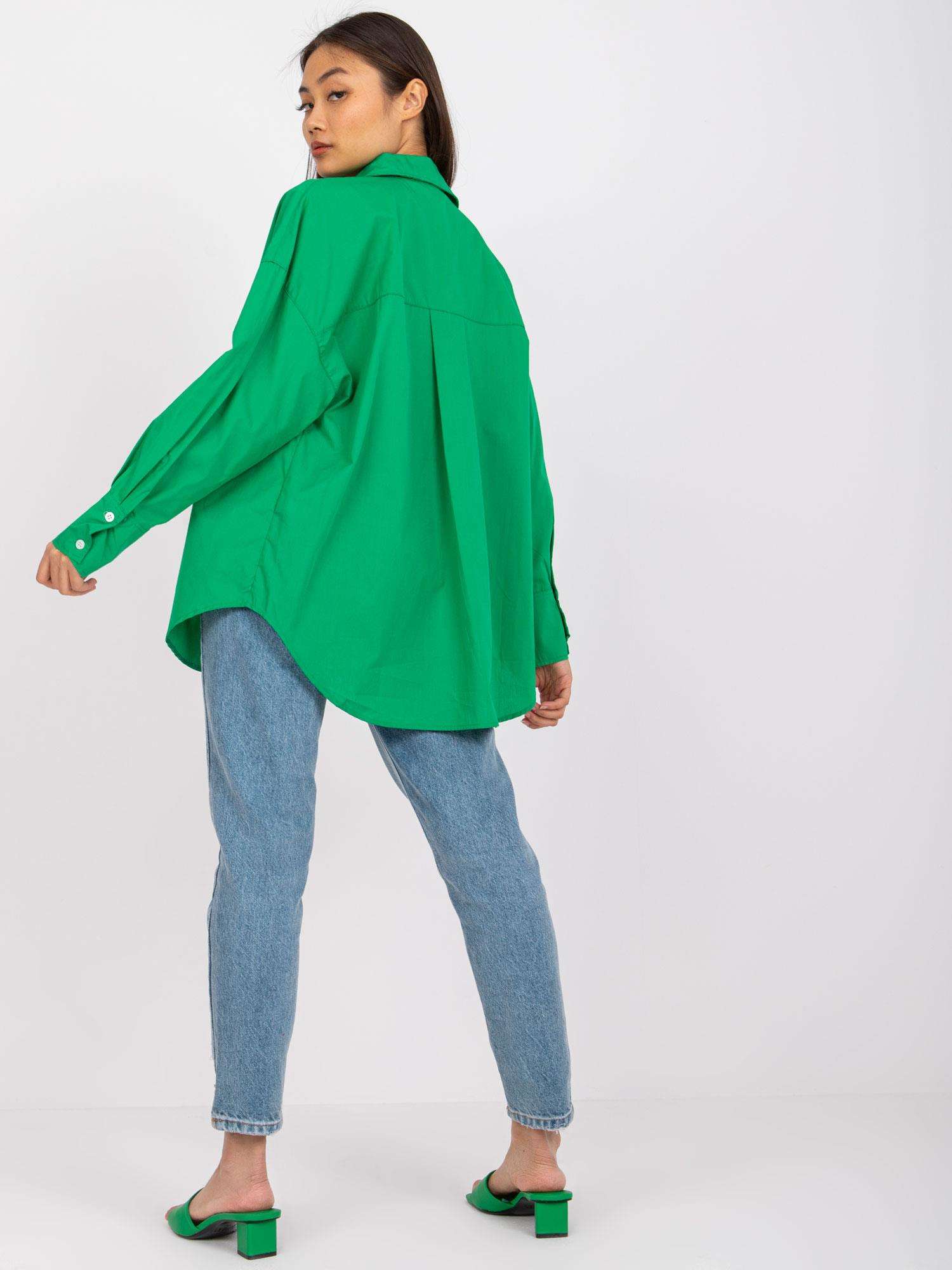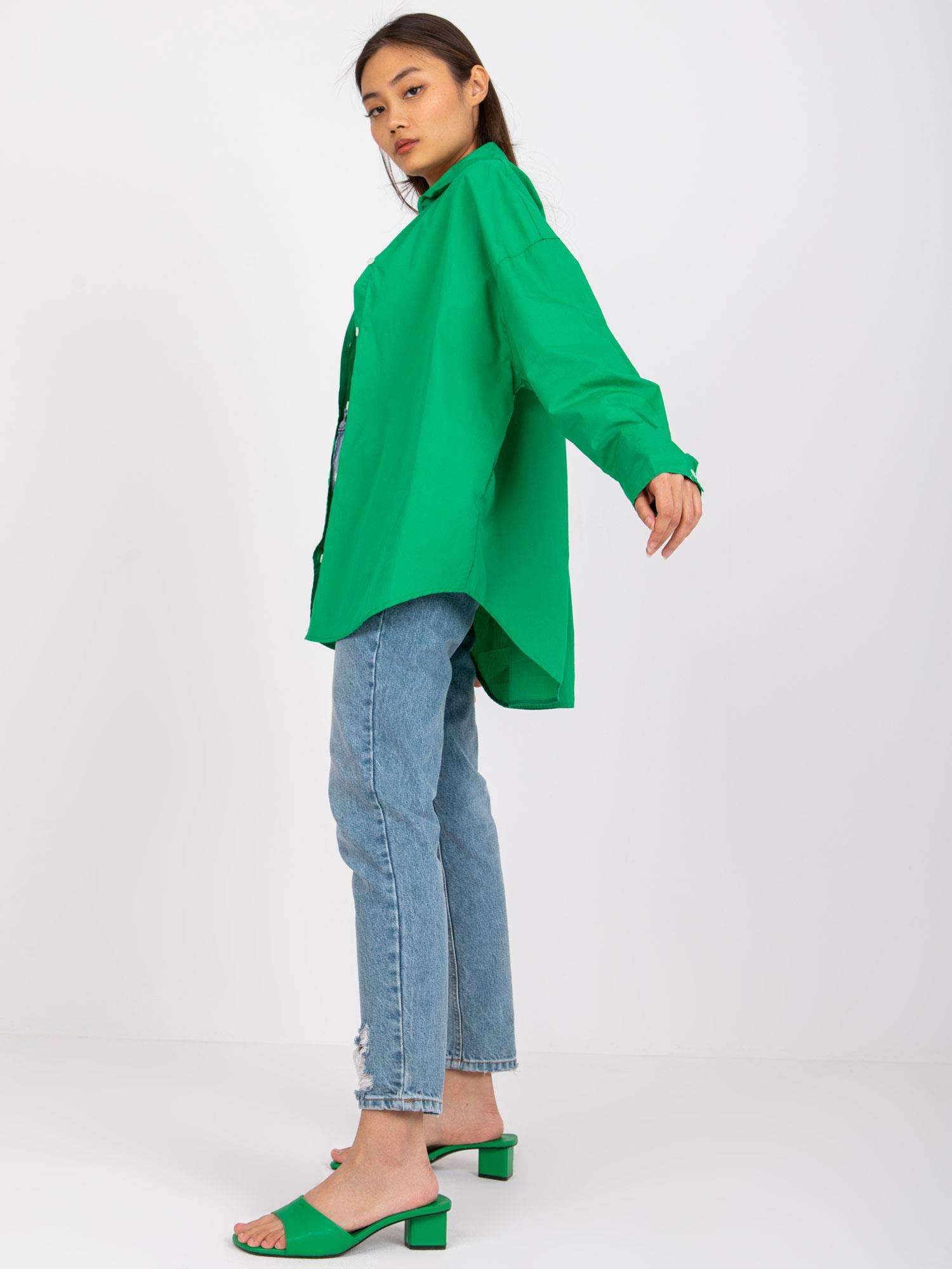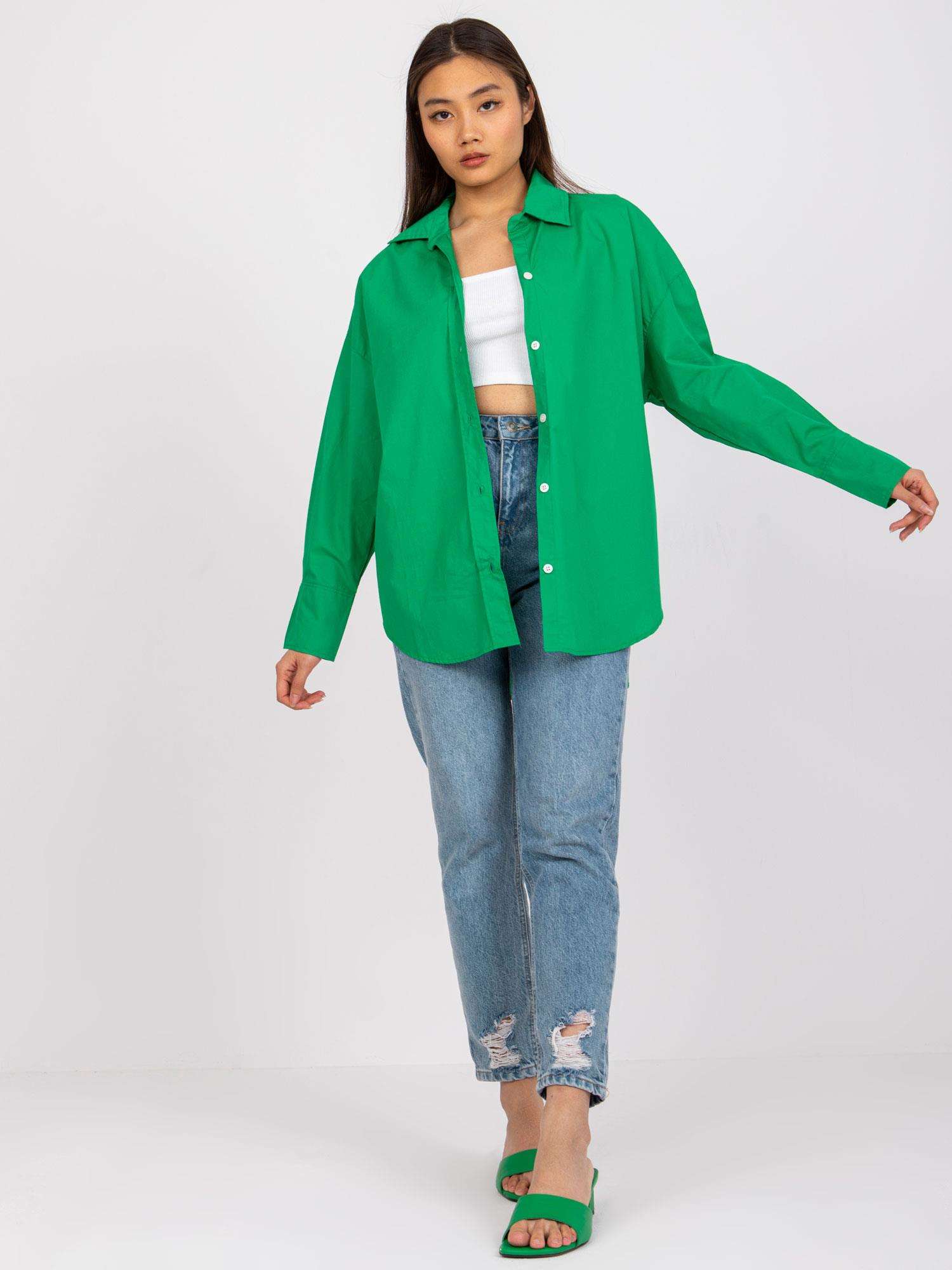 Zielona koszula damska z długim rękawem